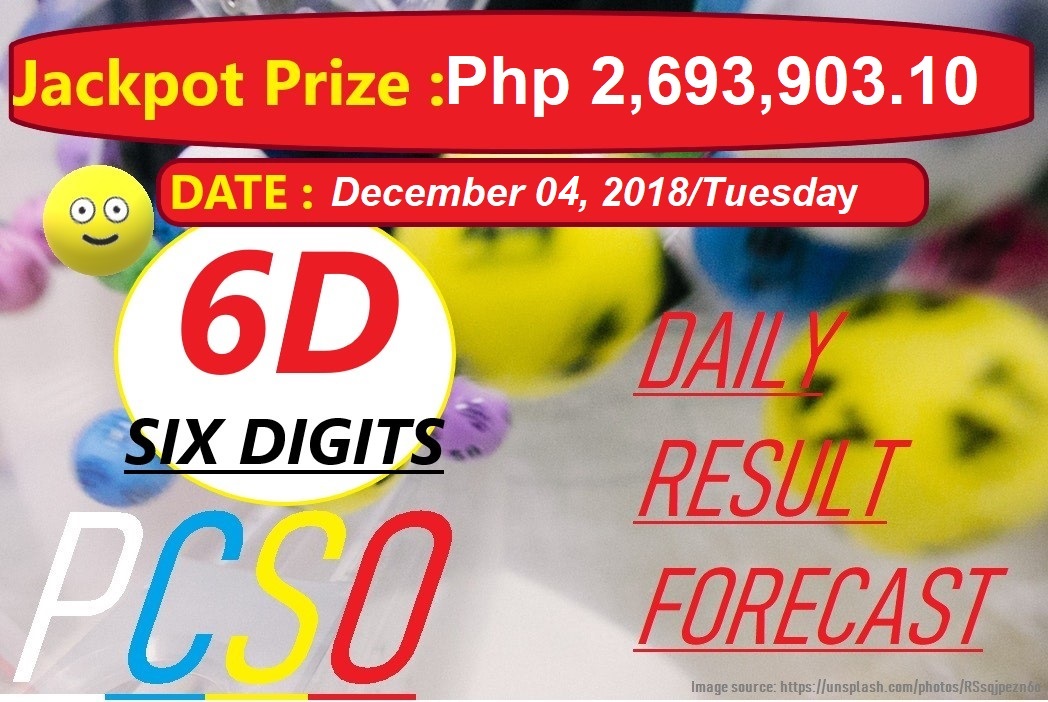 feedgazette Six Digits 6D Lotto Result December 04 2018 Tuesday