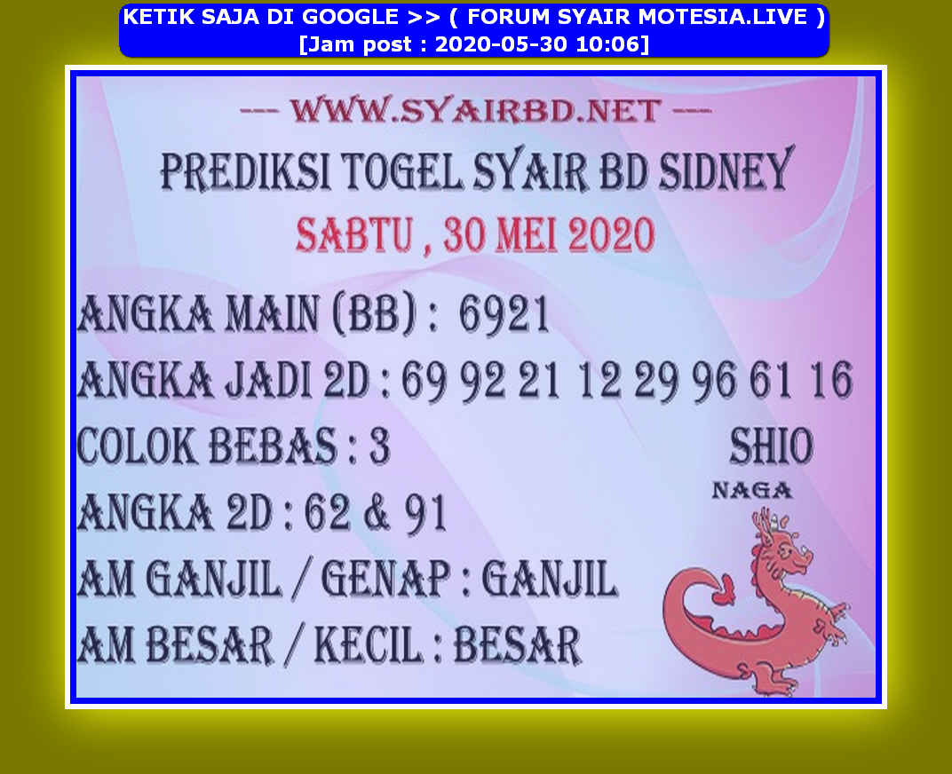 Syair Sydney Hari Sabtu 30 Mei 2020 Royal Syair